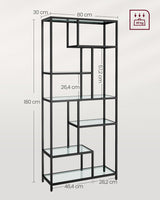 Boekenkast - Opbergkast - Met 6 planken - Metalen frame - Glazen Niveaus - Zwart
