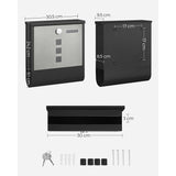 Wandbrievenbus - Brievenbus - Met krantenbak en naamplaatje - Met slot - Zilver Zwart
