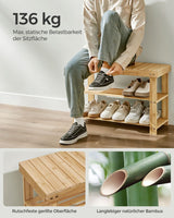 • [Betrouwbare bewaring] De schoenenbank is gemaakt van natuurlijk bamboe en is ontworpen om lang mee te gaan. Hij kan gemakkelijk tot 136 kg dragen en elk niveau biedt voldoende ruimte voor maximaal 3 paar schoenen