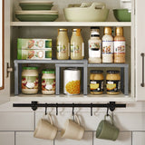 In de keuken: Plaats in de kast of op het aanrecht om meer lagen en meer stapelmogelijkheden te creëren voor mueslipotten, kruidenpotjes, potten, kommen en meer. Je kunt nooit te veel planken in de keuken hebben, toch?
