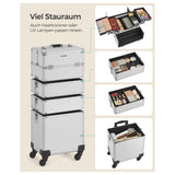 Cosmeticakoffer met wieltjes - Trolley 4-in-1 make-upkoffer - Zilver
