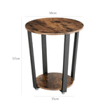 Bijzettafel - Ronde Bijzettafel - Banktafel - Nachtkast - Woonkamertafel - Vintage Bruin / Zwart
