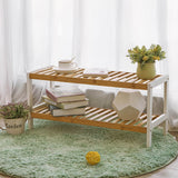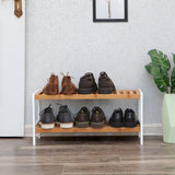 Bamboe - Schoenenrek - 2 niveau's - Badkamerplank - schoenenkast - Bamboe schoenenrek - Voor 8 paar schoenen - Wit-natuurlijk