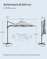 - [Stor skygge] Drej bare pendelen for at åbne den Ø 300 cm parasol med belysning. Dette giver dig en privat oase, der komfortabelt imødekommer 6-8 personer - perfekt til uforglemmelige udendørs møder