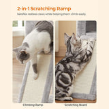 - 2-i-1 skrabe: Med et ridser og en skråning i en, lader denne ridsende post ikke kun dine katte skrabe til dit hjerte indhold uden at ødelægge din sofa, men hjælper også killinger og ældre katte med at klatre op med lethed