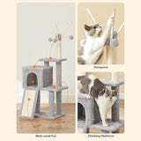 - Sjov på flere niveauer: Med flere niveauer og forskellige områder at spille og slappe af, kan hver kat ubesværet klatre op og ned på dette kattemøbler og deres yndlingssted, hvad enten de er unge eller gamle, spry eller afslappede