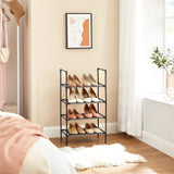 Kenkäteline - 4 hyllyä - metallirunko - musta
