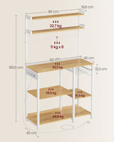 Keittiöteline - seisova teline - pistorasia - useita hyllyjä - metallikehys - vaaleanruskea