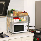Mikroaaltouuni - keittiöteline - 2 tasoa - pöydän järjestäjä - 2 säädettävää hyllyä - 8 koukkua - Hopea