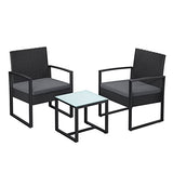 Parveke huonekalut - Lounge -sarja - puutarhahuonekalusarja - Sarja 3 - 2 tuolia - Lasipöytä - Musta