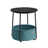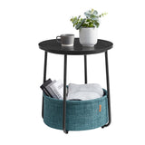 Pyöreä sivupöytä - kangaskori - metallikehys - musta sininen