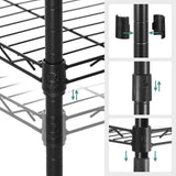 Tilava ja monitoiminen: 2 korkeus -säädettävät pylväät, joissa on 16 kaksoiskoukua, pidä laukut, takit ja sateenvarjot kädessä. 2 alemman hilan hyllyä (jopa alhaisin voidaan säätää!) Ja 1 ylähylly tarjoavat käytännöllisen tilan korille, kengille, hattuille tai kodin tarvikkeille. Aseta tämä viittahuone jalusta käytävään, varastotilaan tai pesutuhuoneeseen - missä tarvitset sitä! Ei enää heiluta: Sano hyvästit pienelle ärsytykselle: Säädettävät jalat ja kallistussuoja varmistavat, että vaatekaappi on vakaa eikä missään tapauksessa ole olosuhteita Wobble, kun ripustat takin tai poista koukku.