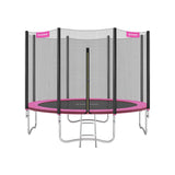 Trampoliini Ø 305 cm - pyöreä puutarhatrampoliini - turvaverkko - tikkaat ja pehmustetut tikut - turvakansi - vaaleanpunainen