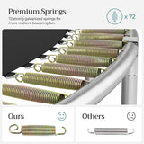 - Kakun jäätäminen: Tämä trampoliini on valmistettu galvanoidusta teräksestä ruosteen estämiseksi. T-yhteydet tarjoavat perusvoiman ja kaksoispultit tarjoavat tälle trampoliinille tukevan ja luotettavan rakenteen.