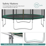 Trampoliinihyppy on tietysti oltava hauskaa. Turvallisuutta ei kuitenkaan välttämättä ole laiminlyöty. Siksi tämä trampoliini on varustettu erittäin hienolla turvaverkolla, joka imee laukauksen erityisen hyvin. Lisäksi verkon ja jousien pylväät peitetään EPE -vaahdolla, mikä myös vähentää vammojen mahdollisuutta.