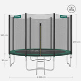 Trampoliini Ø 366 cm - pyöreä puutarhatrampoliini - turvaverkko ja tikkaat - musta -vihreä