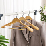 Vaatimisosassa oleva silmäys: Näissä kiinteissä puisissa ripustimissa, jotka vaikuttavat heidän lämpimän luonnollisen värinsä ja miellyttävän sileän pinnan läpi, puvut näyttävät aina siltä, että olet juuri ostanut ne ja ne ovat aina valmiita käytettäväksi. Huomenna onko haastattelu ja kokous? Ei ongelmaa!