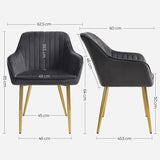 Ruokasalin tuolit - nojatuoli - verhoiltu tuolit - 6 -sarja - käsinojalla - metallit - samettihoitto - harmaa
