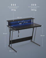 Gaming Bureau - Met led verlichting en stopcontact - Verhoogde plank - 60x100x76 cm - Zwart