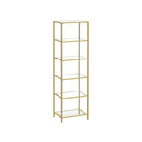 - Votre maison mérite un peu de luxe: lignes droites, draps en verre, cadre en acier doré - placez cette étagère debout simple mais élégante dans votre maison et créez une atmosphère luxueuse