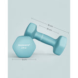 Couleur: Matériau bleu clair: fonte, revêtement en néoprène Taille du produit global: 21 x 10,5 cm (l x b); Taille de la poignée: 11,5 x 4,1 cm (l x dia.) Poids: 2 x 5 kg