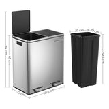 Triez vos déchets ménagers: Le bac de déchets avec 2 compartiments séparés est la solution parfaite pour séparer les déchets quotidiens tels que les déchets résiduels, les déchets organiques, etc.