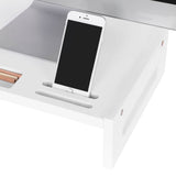 • Commande au travail: stylos, trombones, notes, votre téléphone portable - toutes ces choses peuvent être soigneusement stockées sur ce bureaulegger. Notez également l'espace de stockage sous la surface. Vous pouvez, par exemple, enregistrer des ordinateurs portables ou des fichiers