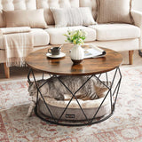 - Voulez-vous un charme spécial? Le cadre en forme de diamant et la table ronde dans une teinte rustique donnent à la table basse une touche attrayante! Cette combinaison plaira à vos invités!