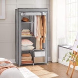 Kledingkast - Stoffen kast - 2 kledingstangen - 6 planken - 88 x 45 x 168 cm - Grijs