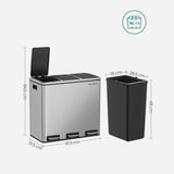 Coșul de gunoi - Sistem de separare a deșeurilor - cu 3 găleți interioare - 54 litri - argint