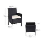 • ce obții Un set de mobilier de grădină format din 2 scaune de grădină confortabile de 58 x 49 x 85 cm fiecare cu perne și o masă de grădină de 40 x 40 x 45 cm - Transformă -ți grădina într -un paradis bun -bun!