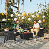 Set de mobilier de grădină - Van Polyrotan - Set de lounge - în aspectul ratanului - 2 scaune - cu masă de sticlă - negru