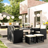 • Bucurați -vă de cina dvs. exterioară! Puneți gustări pe blatul sticlei temperate și așezați -vă într -unul dintre scaunele cu perne de 7 cm. Există mâncare cu degetele? Pernele detașabile și blatul de sticlă sunt ușor de curățat!