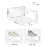• [Set de 18] 18 cutii de plastic ușor de montat, fiecare cu o dimensiune interioară de 30 x 9 x 15 cm, potrivite pentru încălțăminte până la dimensiunea 44, astfel încât să puteți curăța mizeria în cel mai scurt timp! Adidași, papuci și tocuri înalte - totul bine