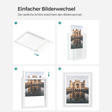 Låt bilder flyta: Om du målar ett trevligt foto eller tar ett bra landskapsfoto kan du förvandla det till ett konstverk med dessa fotoramar. Listorna har ett foto mellan de två fönstren, det ser ut som att fotot flyter i luften. Modern look, vit yta med spannmål - dessa fotoramar matchar olika inre stilar.