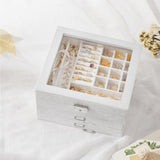 • Vad är under glaslocket? Massor av lagringsutrymme. 3 nivåer, 8 rullar för ringar, 12 små fack, 4 smala fack och 2 draglådor: Dina juveler kan hållas snyggt i denna smyckeslåda. Inga intrasslade halsband
