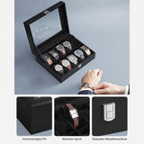 Watchbox för 10 klockor - Watch Box - Glass Lid - Svart