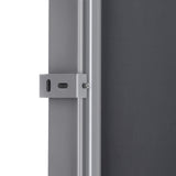 Du kan också använda sido -tak inomhus, till exempel på ett läkarkontor eller studio. Allt du behöver är en stabil vägg där sidogardinen kan fästas vid. Med golvfästet kan markeringsstången också lätt tas bort igen, så att det bara finns en låg, liten konsol på golvet som inte sticker ut särskilt.