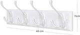 Garderoben är utrustad med 4 djupa krokar, som erbjuder tillräckligt med utrymme för alla typer av kläder och föremål. Tack vare den vita färgen passar denna krokremsa också perfekt med andra möbler och är därför en välkommen gäst i varje hall, foajé, badrum eller sovrum.